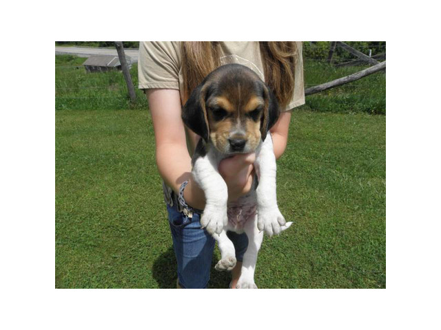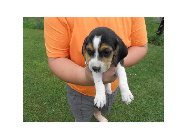 AKC Tri-color Beagle puppies for sale. Mother is the bloodline of Branko and dad is the bloodline of Russell Creek. Born on May 27, ready for the weekend of July 4. $250.00 for $450.00 every one or two.
