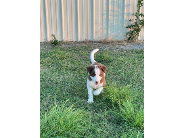 Border Collie Knoxville (Tennessee) July 22, 2025 Check with sellerMy mom has 2 male Border Collie puppies still available out of a litter of 6. They are 8 weeks old and eating dry food. Both puppies are red and white. They've been dewormed twice but will need their vaccinations. The parents are a tri-colored medium...