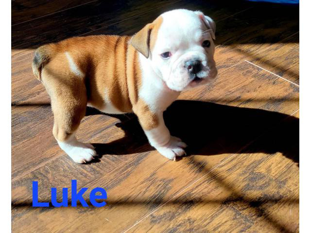 Purebred English Bulldog puppies will be available onward October 24th. Puppies are AKC registered and will be vaccinated before being placed in new homes. The rehoming fee is $2,200 for males and $2,500 for females. If you need more information or additional photos, please text or call. Mom and Dad are our family pets.