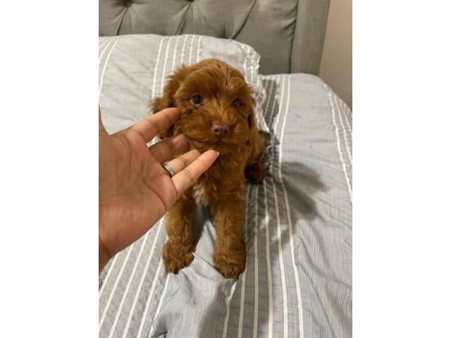 Cavapoo Los Angeles (California) May 30, 2025 $ 650.00Gorgeous Red F1b Cavapoo Puppies looking for there new forever loving home. They are very calm and loving therefore will be great around kids and other pets. They will come micro chipped witch will be transferred into new owners & will come with ...