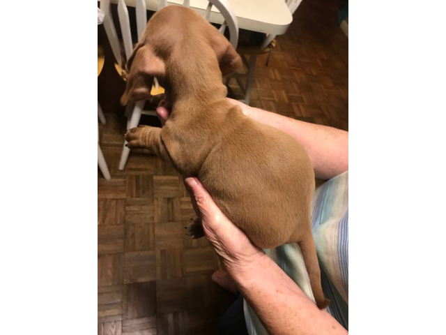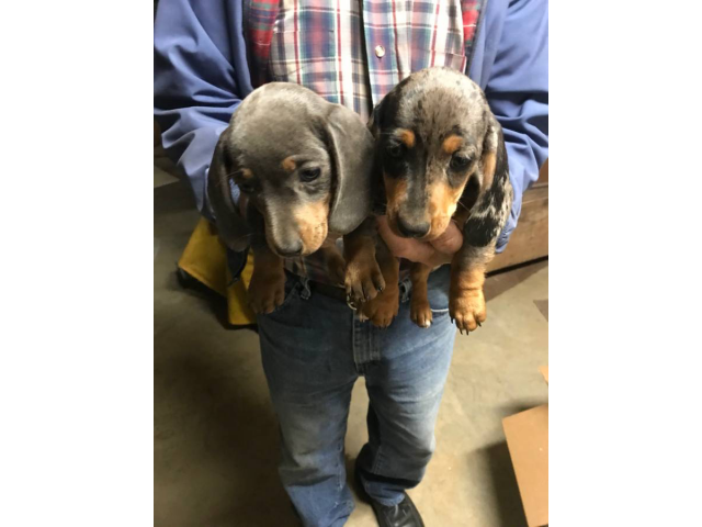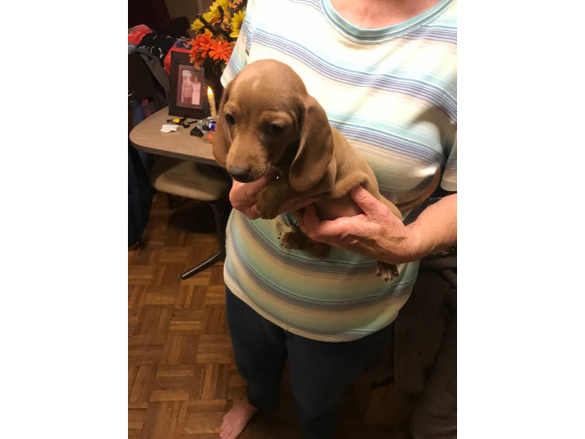 Dachshund Rialto (California) October 18, 2025 $ 200.00These 8-week-old Mini Dachshunds are full of personality — four playful little boys and one gorgeous black-and-tan girl who loves to be the center of attention. They will be 8–11 pounds when full-grown. They’ve been raised indoors with lots of love a...