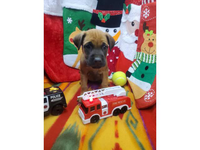 Hello, we have a litter of Daniff puppies that were born on October 16. They have had at least 2 vaccines a Neo-parvo and an Imuno-Vac Canine 5. They were wormed every 2 weeks from birth with Nemex2 before they left... They were handled with Toltrazuril a minimum of 2 times. They come with a gift bag... which covers everything you need to get your puppies started....toys, treatments, collar, leash, dog bedding, plastic dog bowls, additional syrup, more... plus a big bag of dog food.... You have to begin with this puppy... We provide funding for lifetime preparation and lifetime return policies.... To monitor intelligence, training, wellbeing, and over all happiness, we keep in contact with every puppy... The fee for adoption is $800.