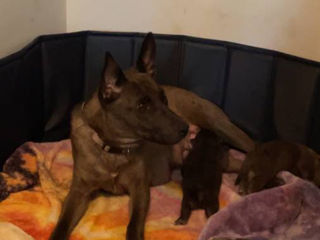 The puppies are a mix of German Shepherd and Pitbull, with the father is a purebred German Shepherd and the mother is a mix of Pitbull and German Shepherd. They are well-behaved and have been introduced to solid foods and crate training. They will also receive worming treatment. The parents can be seen in the last two photos. A rehoming fee will apply.