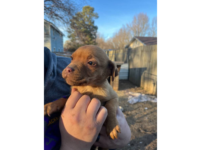 We are currently looking for homes for 5 labrabull puppies. Mom is a red pit bull and Dad is a Labrador. Except for the chocolate male, all of the puppies are female. All puppies have received one round of three-way vaccinations as well as deworming. They are currently 11.5 weeks old and looking for forever homes. I'm asking $40 for shots, food, and wormer. Please text me at the number listed above.