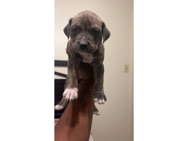 I own three Labrabull puppies that were born on December 5, 2023. There are two boys and one girl. These puppies are a mix of Pitbull and a small percentage of Lab. Their mother is a mixed Lab with Pitbull Brindle, and their father is a purebred Pitbull. The rehoming fee for these puppies is $200.00. If you are interested, please feel free to text me.