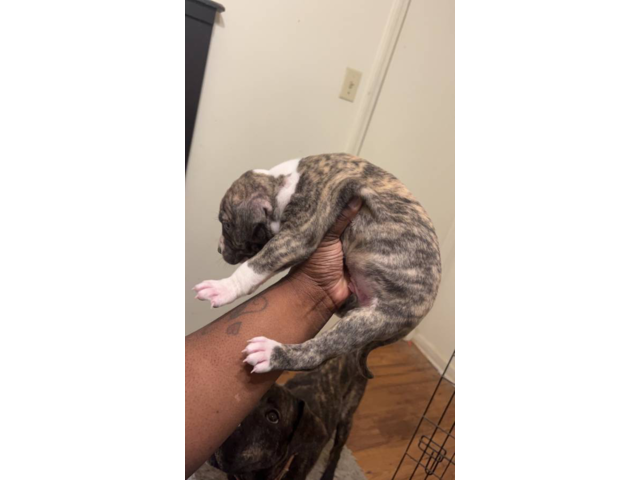 Brindle Pitbull and Lab Mix puppies