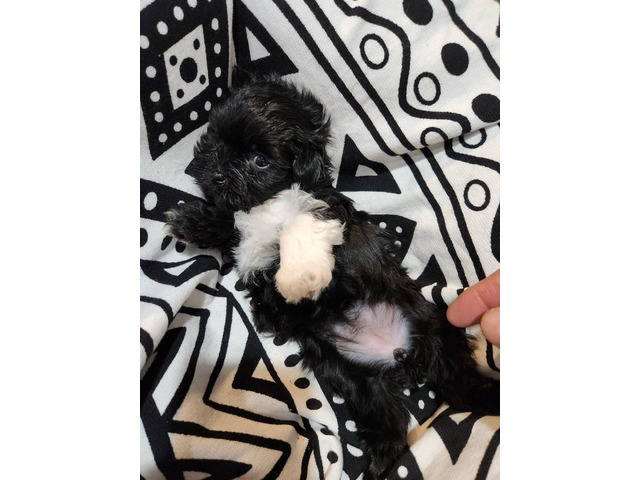 We have available four adorable Morkie puppies, a breed that results from crossbreeding a Maltese and a Yorkshire Terrier. The litter consists of two boys, one with a beautiful coat of white and the other with a mix of black, brown, and grey. The two girls in the litter are both black, with one of them having a charming white leg. These puppies have been socialized, and they are known to be affectionate and playful dogs. The puppies have had their first set of shots and veterinary examinations, and we have included all their veterinary papers in the take-home puppy welcome kit. These puppies were born on November 9th, 2022, and are available for immediate adoption. If you decide to take one home with you, you will receive a welcome kit that includes all the necessary items to ensure the puppy's comfortable transition to its new home.