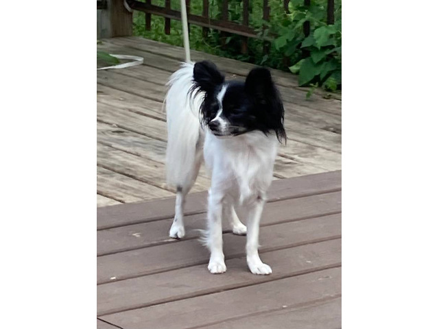 Papillon May 23, 2025 $ 1100.00Our Papillon puppies are raised in our house with constant supervision and handling for the first 3 weeks of their lives. We have 5 children that interact with the puppies daily which helps the puppies become very outgoing and well socialized. We als...