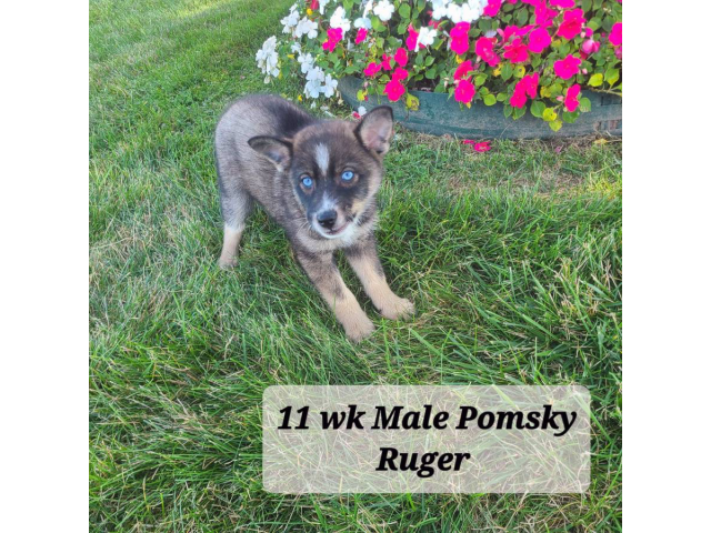 Pomsky Boston (Massachusetts) January 31, 2026 $ 600.00Looking for a "miniature Husky" with a heart of gold? Meet our adorable F1B Pomsky male. At 3 months old and 15 lbs, he is the perfect 75% Siberian Husky and 25% Pomeranian split. He is expected to mature to a sturdy, medium size of approximately 30 ...