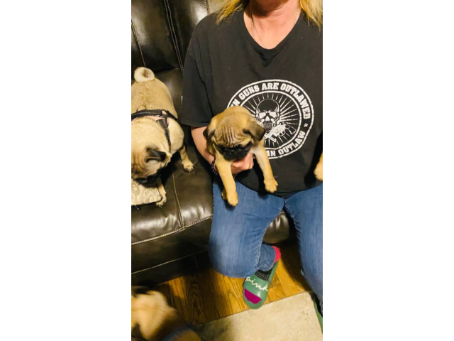 Pug Aurora (Colorado) December 14, 2025 $ 900.00We have gentle male and female pug puppies looking for loving homes. These calm, affectionate pups love to cuddle in your arms and gaze up at you with soft, trusting eyes. Details: 9 weeks old First vaccination completed Dewormed Ready for their new ...