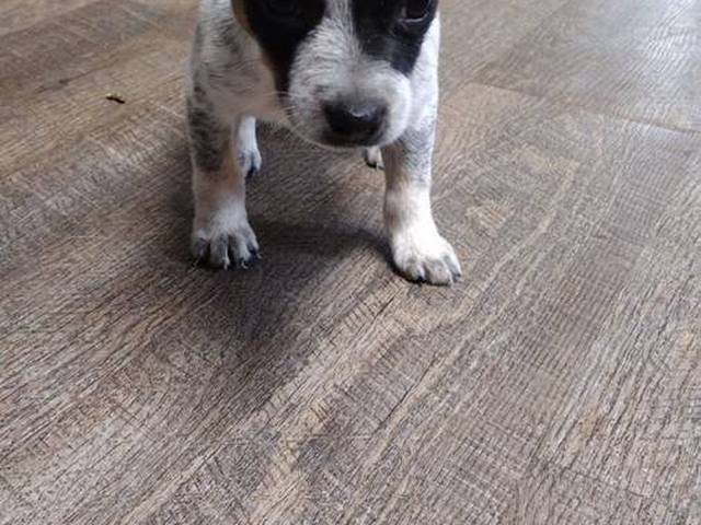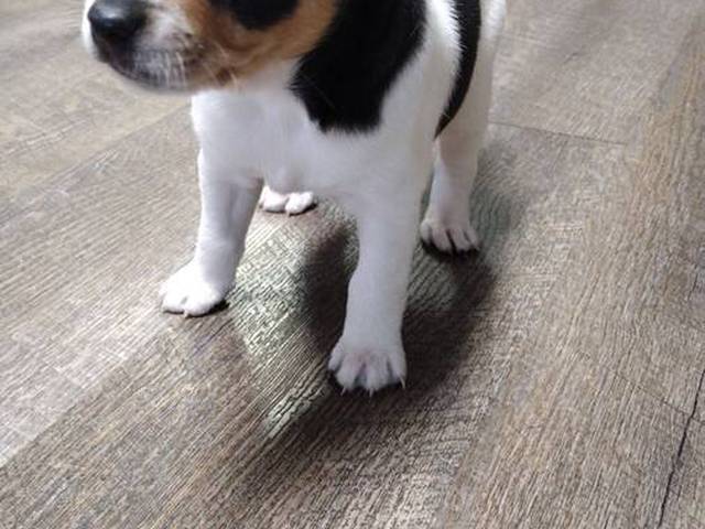 There are two rat terrier puppies currently available. The first picture showcases a male puppy, while the second picture features a female puppy. Their date of birth is March 2nd, 2024. These small puppies have they deworming done, had their dew claws removed, tails docked, and received their initial distemper shot. They will be ready to find their forever home on April 13th, 2024. A rehoming fee is the only requirement.