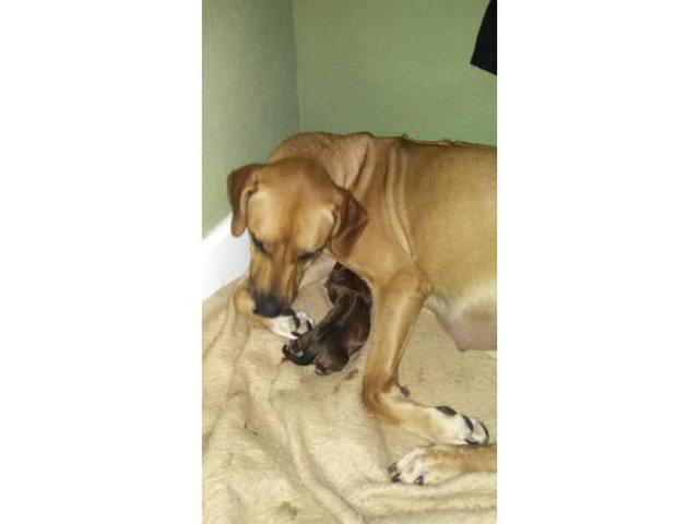 Rhodesian Ridgeback Jacksonville FL (Florida) May 24, 2025 $ 350.00There are 7 girls and 5 boys in the litter of puppies. They are 7 weeks old and will be ready in 2 weeks. The puppies will have their first shots and will be dewormed. Both the mommy, a Wheat Rhodesian Ridgeback, and the daddy, a Dutch Shepard (brind...