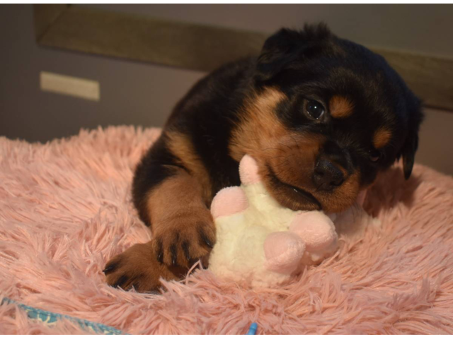 Rottweiler Phoenix (Arizona) December 19, 2025 $ 2000.00Perfect companion pet. Friendly with family and invited guests. Very cuddly. AKC registered, microchipped, vaccinated and dewormed. AKC registration and microchip registrations are included. 30 days health insurance included. Hereditary health gua...