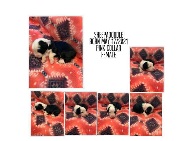 Shepadoodle May 23, 2025 $ 1000.00Gorgeous miniature Sheepadoodle puppies are looking for new homes. We currently have one male and two females with stunning blue eyes. A Sheepadoodle is a mix of an Old English Sheepdog and a poodle. They, like all other doodles, are hypoallergenic. ...