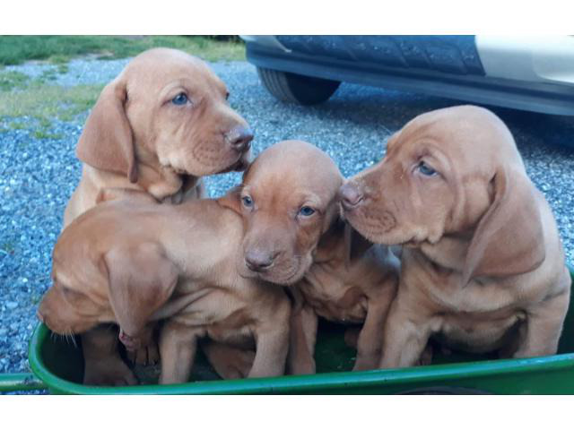 For sale is a beautiful Vizsla litter. There are four boys and four girls available. Vaccinations up to date, deworming, vet check, registration Akc, and microchip are all included. Please let me know if you have a question.