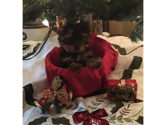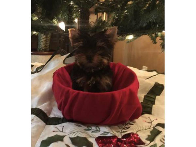 Yorkshire Terrier Beaumont (Texas) December 9, 2025 $ 2950.00Charlie is a beautiful chocolate-colored boy with stunning features. He's expected to be small at maturity, weighing around 4.5 lbs. What's Included: Up-to-date vaccinations Complete veterinary health check Pricing: $2,950 for pet homes (no breeding ...